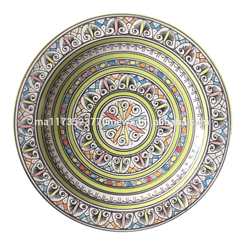 Plato marroquí hecho a mano, vajilla de cerámica de pasta redonda de estilo elegante, platos de vajilla tradicional para ocasiones