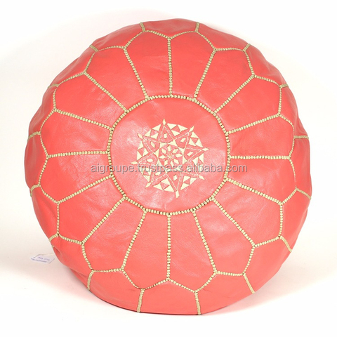 मोरक्को handstitched लाल चमड़े poof, handknitted pouf रचनात्मक Poof तुर्क चमड़े मोरक्को कृत्रिम दौर, हस्तनिर्मित पैर